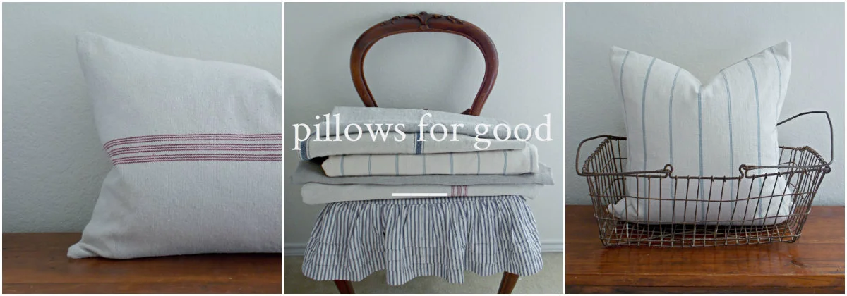 So that's the "For Good" part. The "Pillow" part is also good :) Pillows for Good is my little shop that sells pillow covers for your home. And not just any pillow covers, these are REAL LIFE pillows --> family-room pillows, pillow-fort pillows, sick-days-on-the-couch pillows, my-dog-sleeps-on-my-pillows pillows, because they are completely washable and dry-able in your home machines. All the fabrics are pre-shrunk and will just get softer and more comfortable with use. I have specially selected farmhouse-style fabrics that are sturdy and beautifully timeless and simple. Patterns are yard-dyed (woven into the fabric, instead of just being printed on) and mostly natural cottons and linens. Because, this is how pillows get used at our house (and maybe at yours, too?)...
